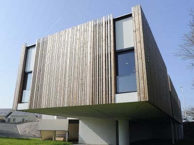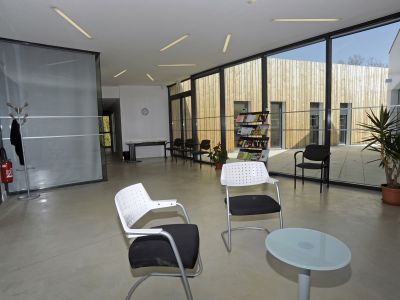 Les objectifs environnementaux sont très fortement valorisés par l’utilisation d’énergie renouvelable, la récupération des eaux pluviales via les terrasses végétalisées, le confort visuel et la luminosité apportée à tous les locaux, le traitement acoustique très étudié des volumes et des parois et surtout par la qualité d’enveloppe générale du bâti garantissent une valeur thermique globale du bâtiment « Ubat » inférieur de 30% aux valeurs réglementaires et s’inscrivant donc dans une démarche de « bâtiment passif ».