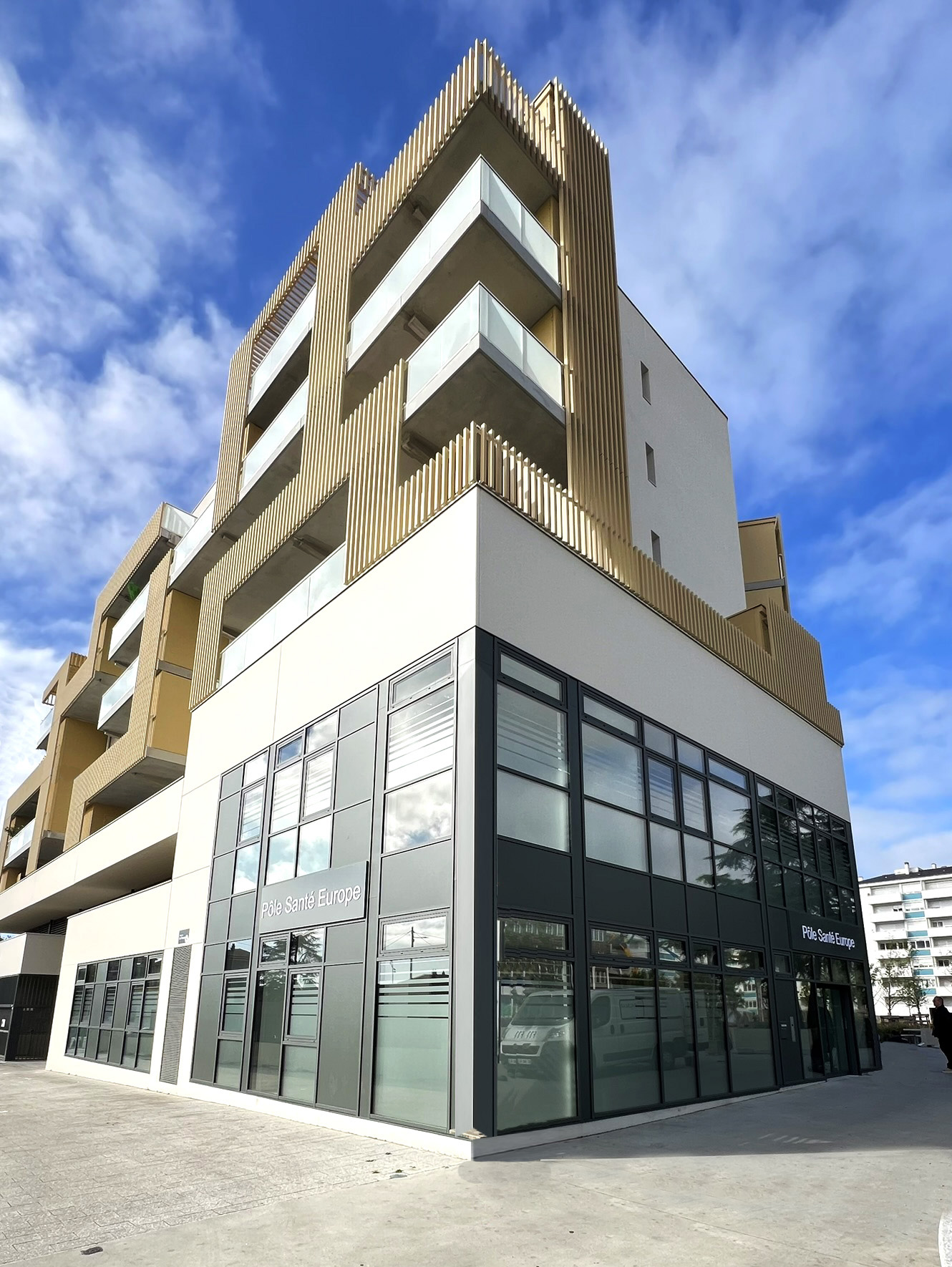 Ce projet de maison médicale situé au cœur de la place de l’Europe s’insère dans un quartier en plein renouvellement urbain. Il prend sa place dans un ensemble immobilier moderne et ouvert sur l’extérieur. Sa centralité et sa visibilité, grâce à une vitrine sur 3 angles bâtis, en font un élément central du projet architectural et s’ouvre généreusement sur le domaine public,
