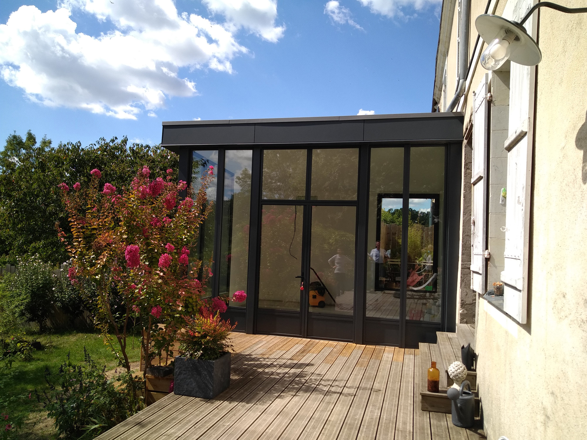 Il s’agit d’une extension d’environ 20m² de surface plancher annexée au corps principal de la maison existante.