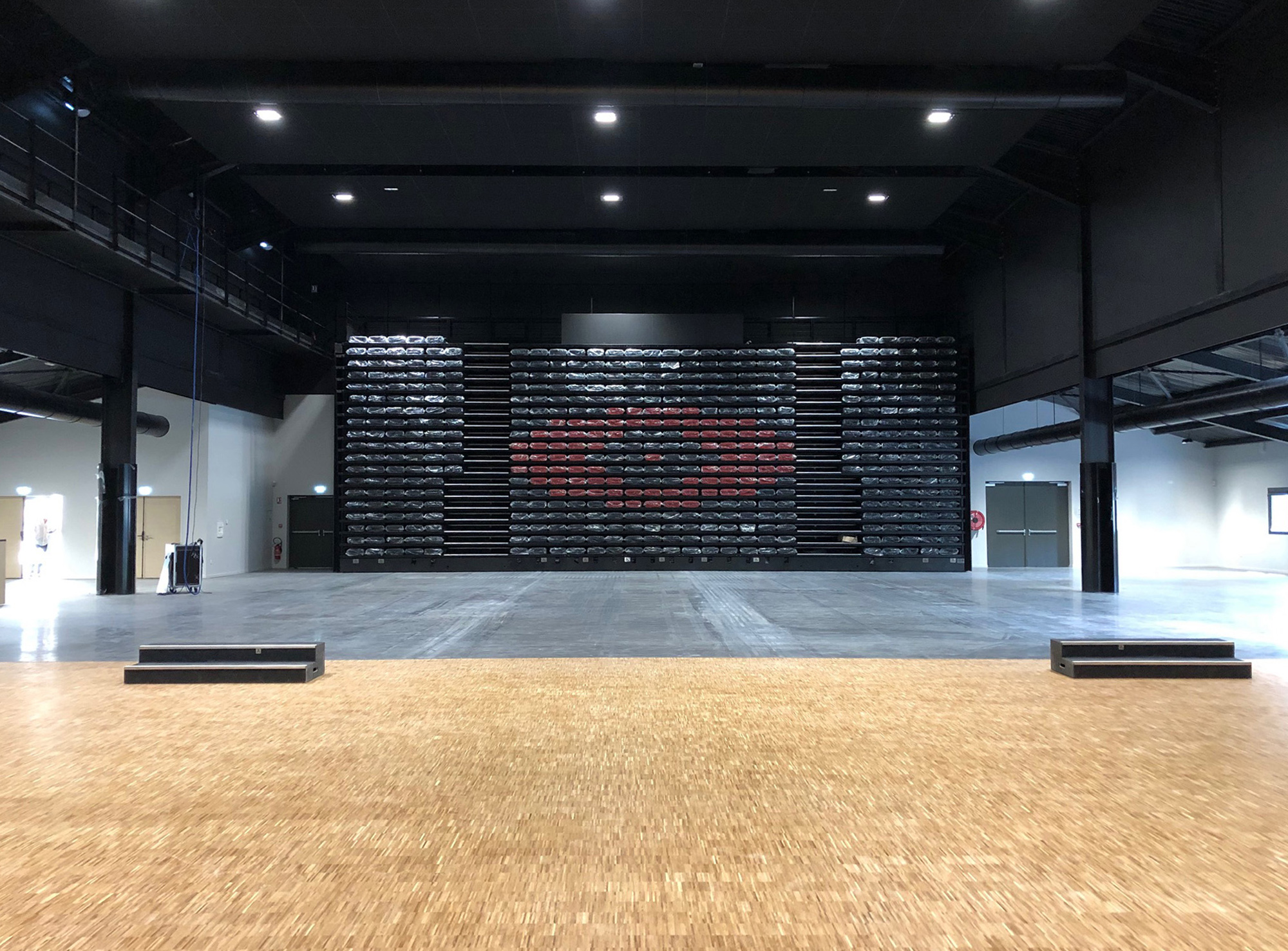 La scène rehaussée, et d’une largeur de 17 m environ, permettra des spectacles d’envergure et sera donc équipée de tout le matériel scénique nécessaire.