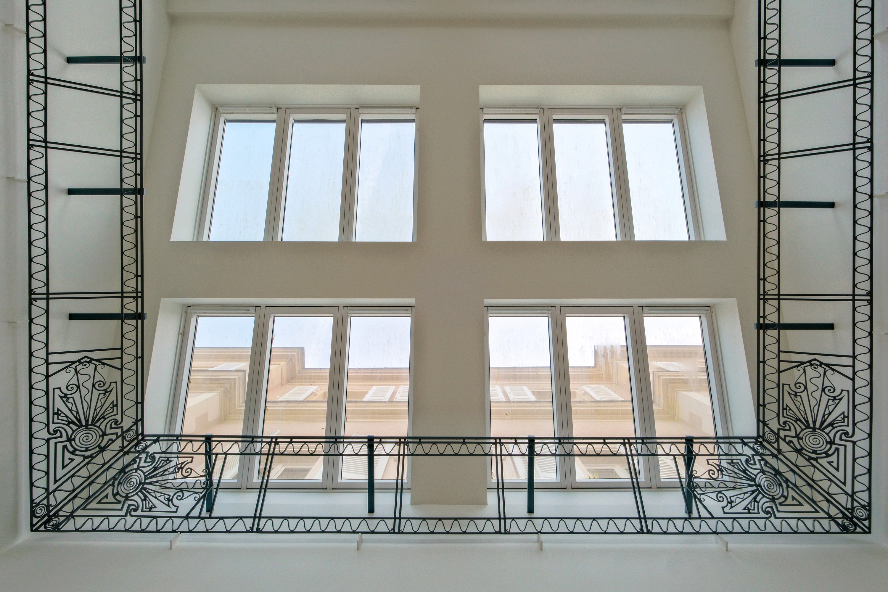 Un second puit de lumière, à la jonction entre immeuble d’origine et l’extension de 1924 est également ouvert pour réaliser un patio. Les deux autres puits de lumière ont été condamnés au profit de généreuses terrasses privatives au 1er étage.