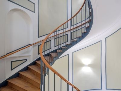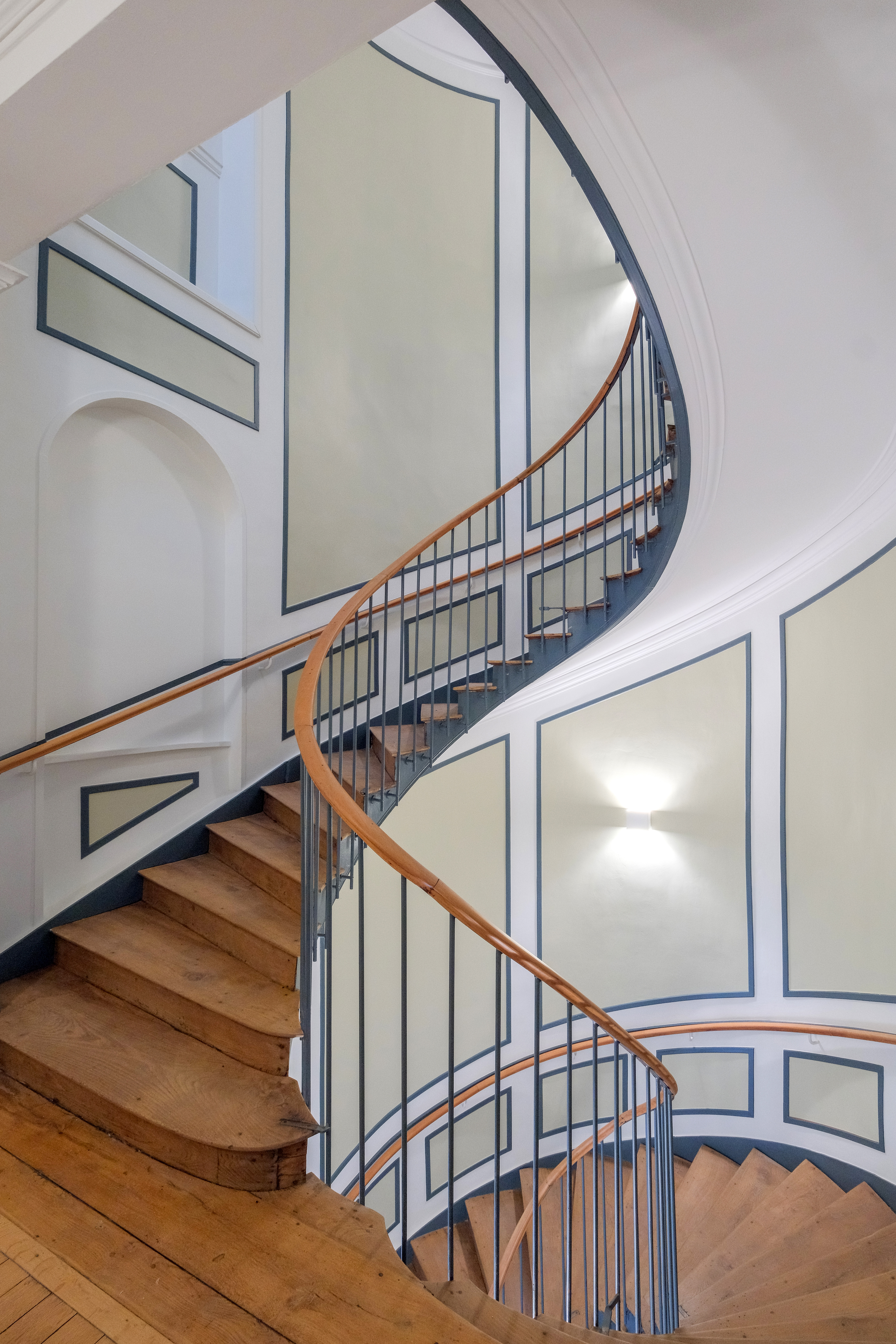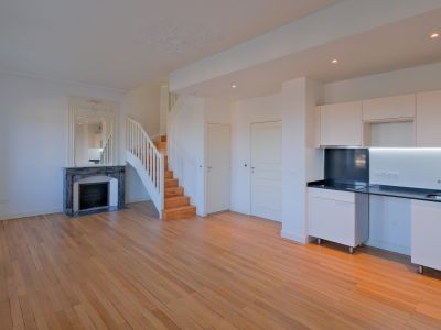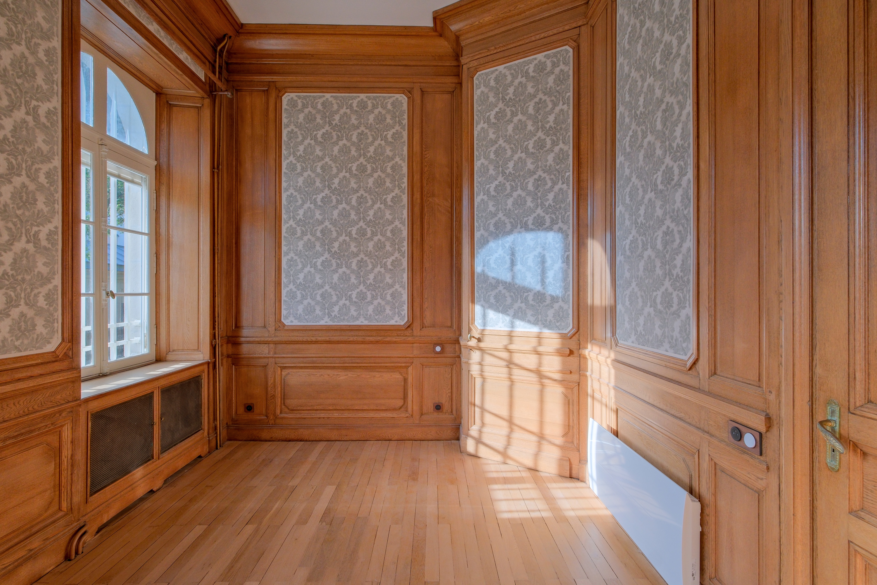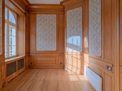 Cela s’applique aussi bien dans les espaces communs avec la conservation de l’escalier monumental en bois, les circulations ou l’intérieur des logements avec la conservation par exemple de cheminée, de moulures, de portes extrêmement travaillées, ou encore de magnifiques parquets…